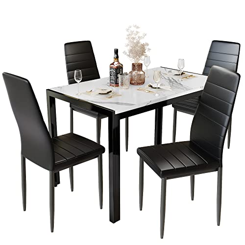 DKLGG Faux Marble Dining Set for Small Spaces Kitchen 4 Table with Chairs Home Furniture