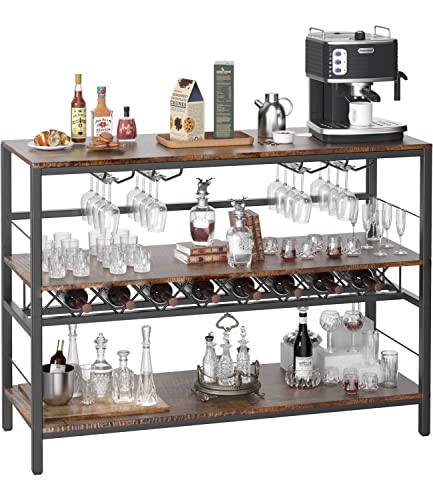 COZY EAGLE Industrial Wine Bar Table, Coffee Bar Cabinet with Storage & Rack for Liquor and Glasses, Whiskey Stand Bars for Home Kitchen Dining Room, Vintage Furniture, Rustic Brown (Rustic Oak)