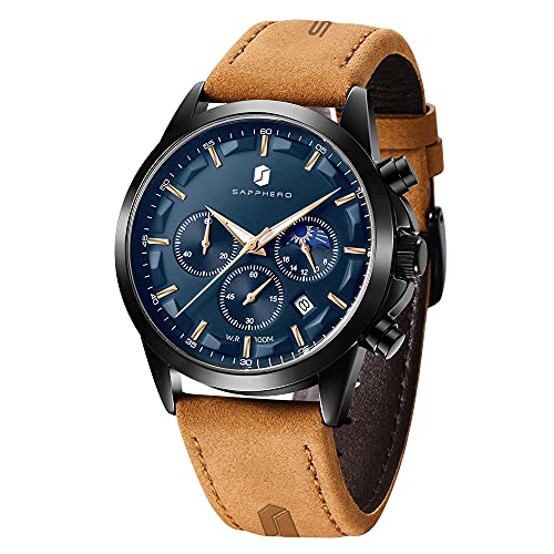 BY BENYAR SAPPHERO Watches for Men 100M Waterproof Chronograph Mens Watch Analog Quartz Movement Wrist Watch Stainless Steel&Leather Strap…