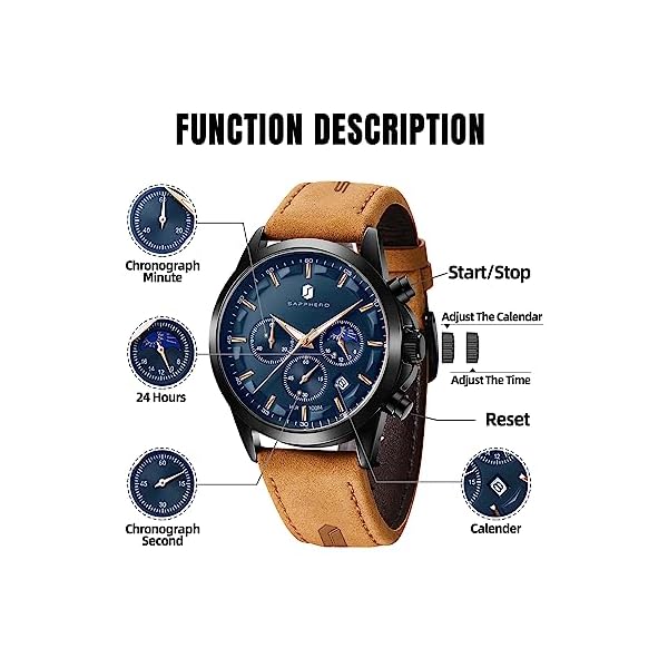 ⌚ PERFECT FOR GIFT: Wristwatches for men perfect gift for family, friends, colleagues, and your own. Our men’s leather wristwatch luxurious fashion gift for graduation, birthday, wedding, and valentine’s day, promotion to win heart touching of our friends and family members. SAPPHERO has set its mission to provide customers with the best quality watches at an affordable price. When you receive this watch, you will find the difference!