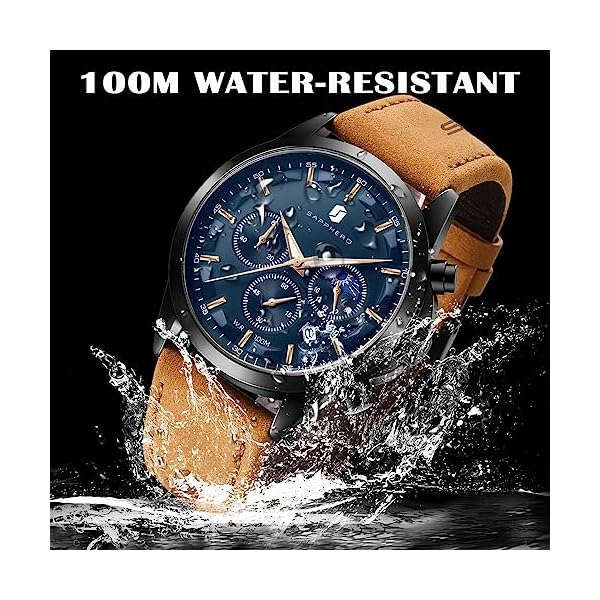 BY BENYAR SAPPHERO Watches for Men 100M Waterproof Chronograph Mens Watch Analog Quartz Movement Wrist Watch Stainless Steel&Leather Strap…