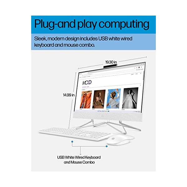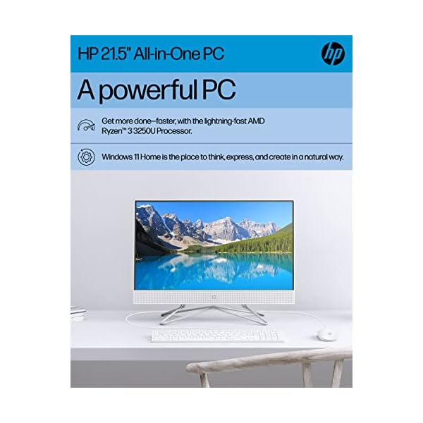 - HP All-in-One PC Desk Computer, 21.5″ Full HD Micro-Edge Display, AMD Ryzen 3 Processor, AMD Radeon Graphics, 8 GB SDRAM, 256 GB SSD, Windows11 Home OS, MU-MIMO, Bluetooth, and Wi-Fi (22-dd0032, 2022)