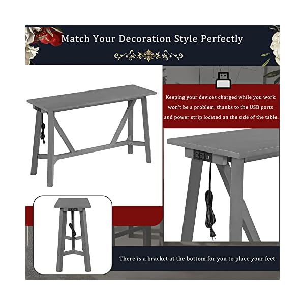 ✔Match Your Decoration Style Perfectly: The side of the table is equipped with a USB port and power strip, which is one of the characteristics of this table. In addition, there is a bracket at the bottom for you to place your feet, which not only ensures comfort when using but also increases the aesthetics. The dark walnut finish or classic gray will pair perfectly with any existing decor you have. Say goodbye to having to haul your work to your local coffee shop and hello to the Multipurpose Bar Table Set!