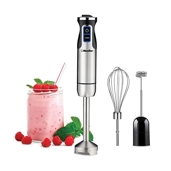 - Mueller Austria Ultra-Stick 500 Watt 9-Speed Immersion Multi-Purpose Hand Blender Heavy Duty Copper Motor Brushed Stainless Steel Finish With Whisk, Milk Frother Attachments, Silver