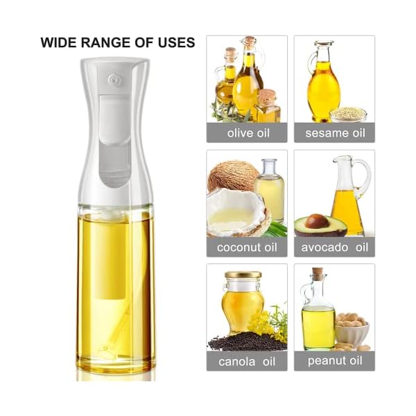 - Oil Sprayer for Cooking, 200ml Glass Olive Oil Sprayer Mister, Olive Oil Spray Bottle, Kitchen Gadgets Accessories for Air Fryer, Canola Oil Spritzer, Widely Used for Salad Making, Baking, Frying, BBQ