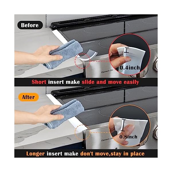 EASY TO CUT: Soft and flexible silicone, conforms to stove and counter surface perfectly, even they are uneven. And the stove gap covers can easily cut to fit non-standard size, for shorter place.Please measure the size of your counter gap before purchasing.