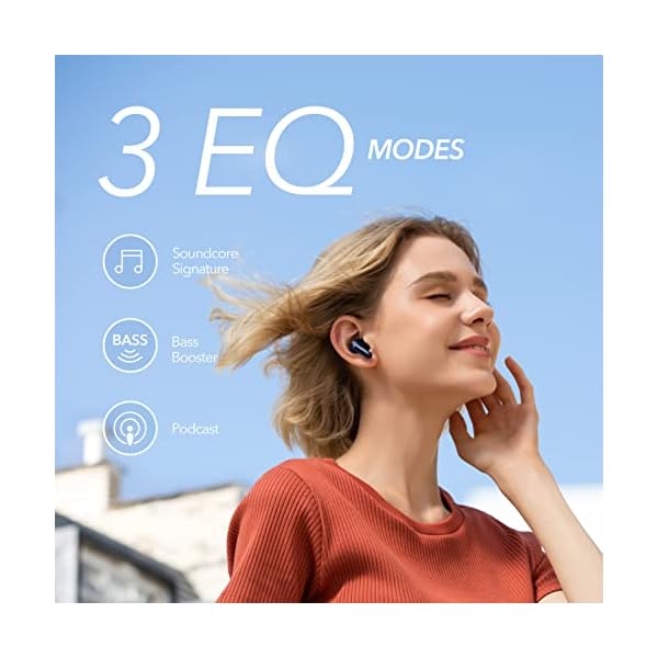 3 EQ Modes: Soundcore Signature, the default EQ, delivers well-balanced sound, while Bass Booster enhances bass-heavy music, and Podcast makes voices stand out clearly. To switch to a different mode, quickly press the right earbud 3 times. You will hear a tone for each successful switch.