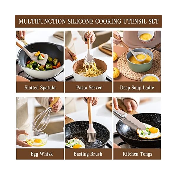 - Umite Chef Kitchen Cooking Utensils Set, 33 pcs Non-Stick Silicone Cooking Kitchen Utensils Spatula Set with Holder, Wooden Handle Silicone Kitchen Gadgets Utensil Set (Khaki)