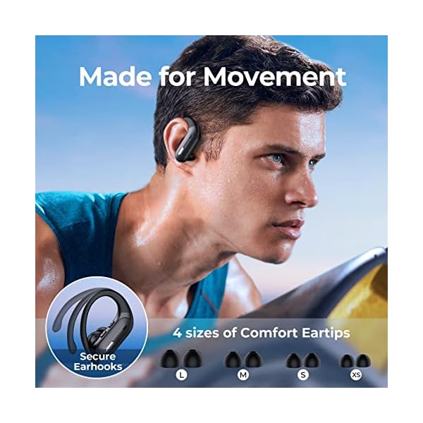 3.【Designed for Sports & IPX7 Waterproof】With flexible, secure-fit ear hooks and ergonomic design, these true wireless earbuds fit in your ear perfectly and never fall out of your ears even you are doing strenuous exercise. Equipped with 4 pairs of different size ( XS, S, M, L ) rubber ear tips for options, you won’t feel tired or painful even if you have small ears. Rating at IPX7 waterproof ensure the bluetooth headset keep out water drop and sweat. Best choice for workout, running, gym.